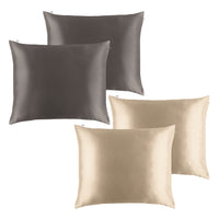 4 Stuks - 100% Premium Zijden Kussensloop - 22 Momme - 2 Antracietgrijs + 2 Taupe - 50x60cm