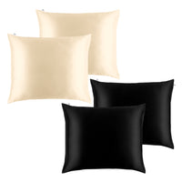 4 Stuks - 100% Premium Zijden Kussensloop - 22 Momme - 2 Champagne + 2 Nachtzwart - 60x70cm