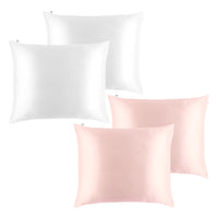 4 Stuks - 100% Premium Zijden Kussensloop - 22 Momme - 2 Parelwit + 2 Zachtroze - 50x60cm