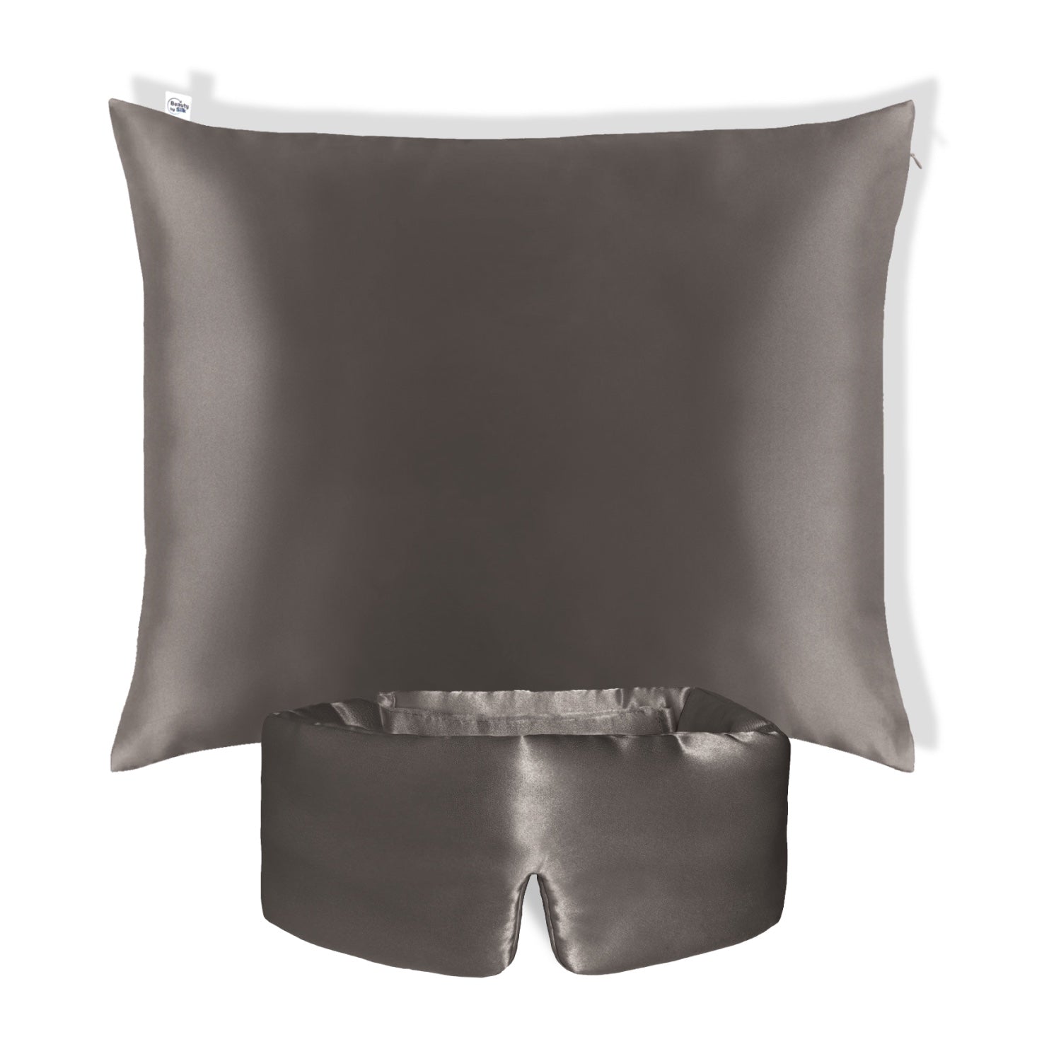 Premium Zijden Slaapbundel: 60x70cm Kussensloop & Slaapmasker - 22 Momme - Antracietgrijs
