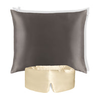 Premium Zijden Slaapbundel: 60x70cm Kussensloop & Slaapmasker - 22 Momme - Antracietgrijs/Champagne