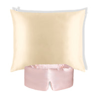 Premium Zijden Slaapbundel: 60x70cm Kussensloop & Slaapmasker - 22 Momme - Champagne/Zachtroze
