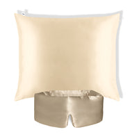 Premium Zijden Slaapbundel: 60x70cm Kussensloop & Slaapmasker - 22 Momme - Champagne/Taupe