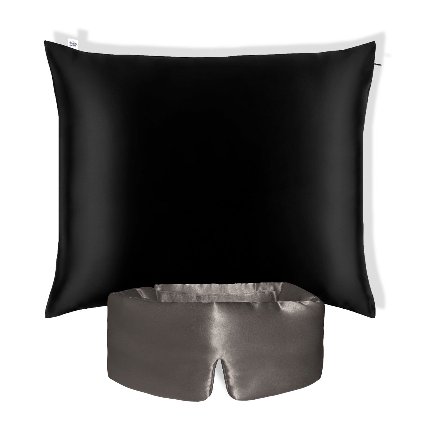 Premium Zijden Slaapbundel: 60x70cm Kussensloop & Slaapmasker - 22 Momme - Nachtzwart/Antracietgrijs