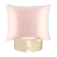 Premium Zijden Slaapbundel: 60x70cm Kussensloop & Slaapmasker - 22 Momme - Zachtroze/Champagne