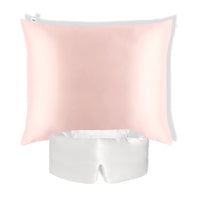 Premium Zijden Slaapbundel: 60x70cm Kussensloop & Slaapmasker - 22 Momme - Zachtroze/Parelwit