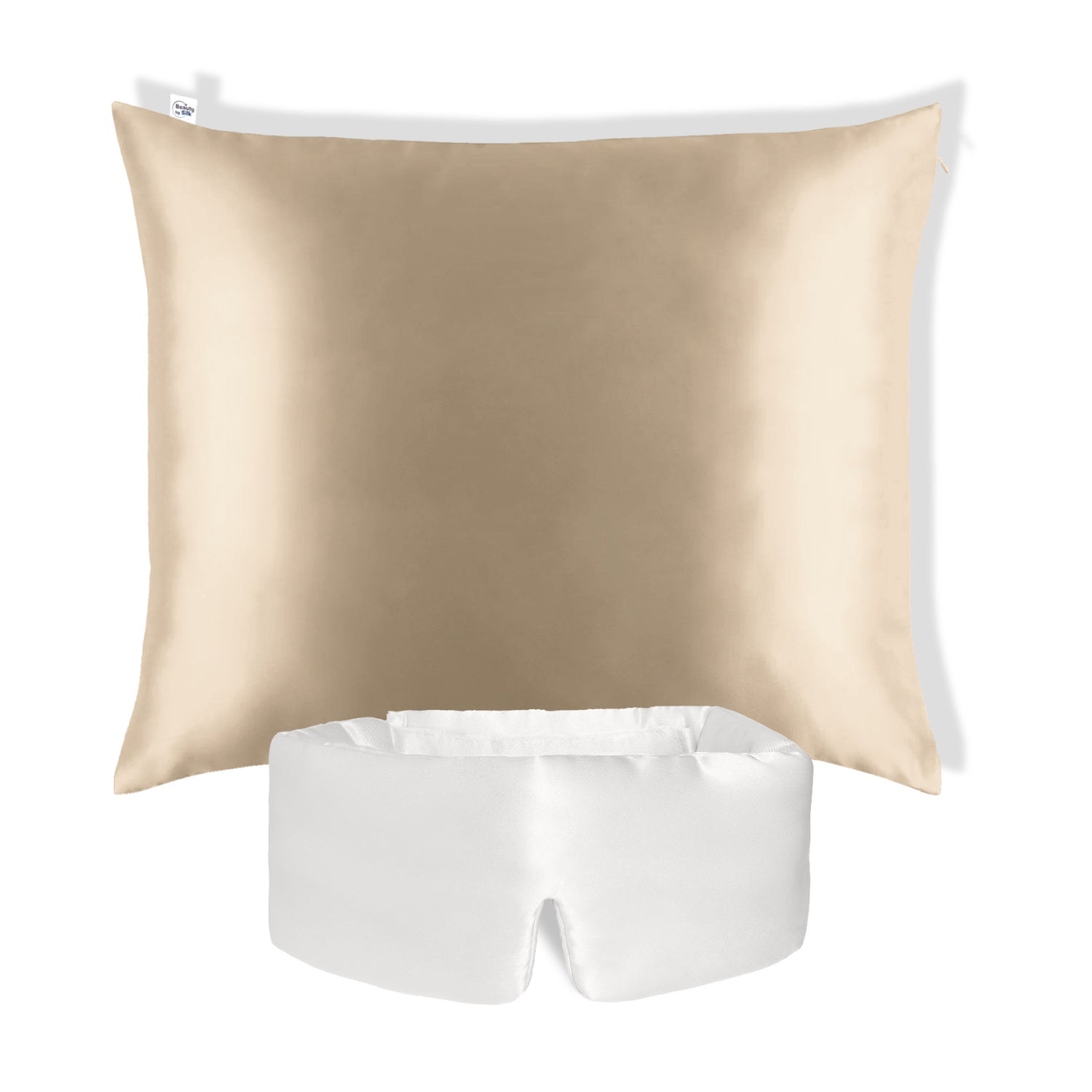 Premium Zijden Slaapbundel: 60x70cm Kussensloop & Slaapmasker - 22 Momme - Taupe/Parelwit