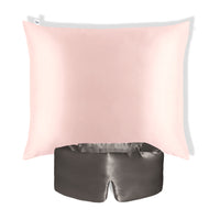 Premium Zijden Slaapbundel: 60x70cm Kussensloop & Slaapmasker - 22 Momme - Zachtroze/Antracietgrijs