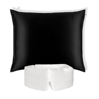 Premium Zijden Slaapbundel: 60x70cm Kussensloop & Slaapmasker - 22 Momme - Nachtzwart/Parelwit